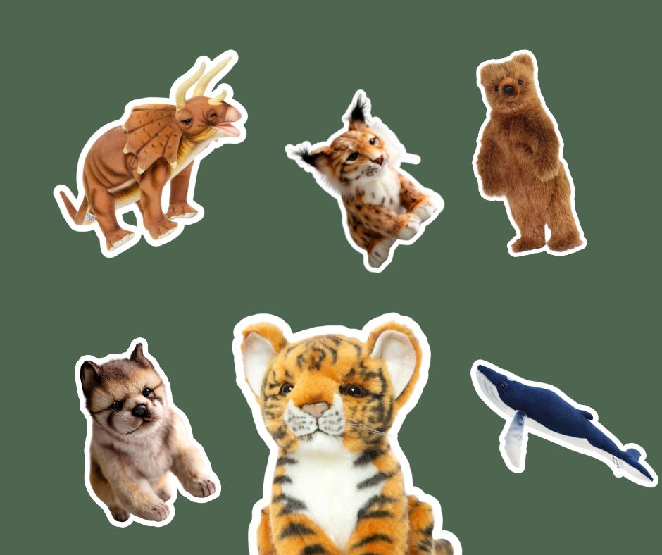 Myke, naturtro kosedyr av elg, rev, gaupe, sel og flere norske favoritter – klare for kos og fantasifull lek.