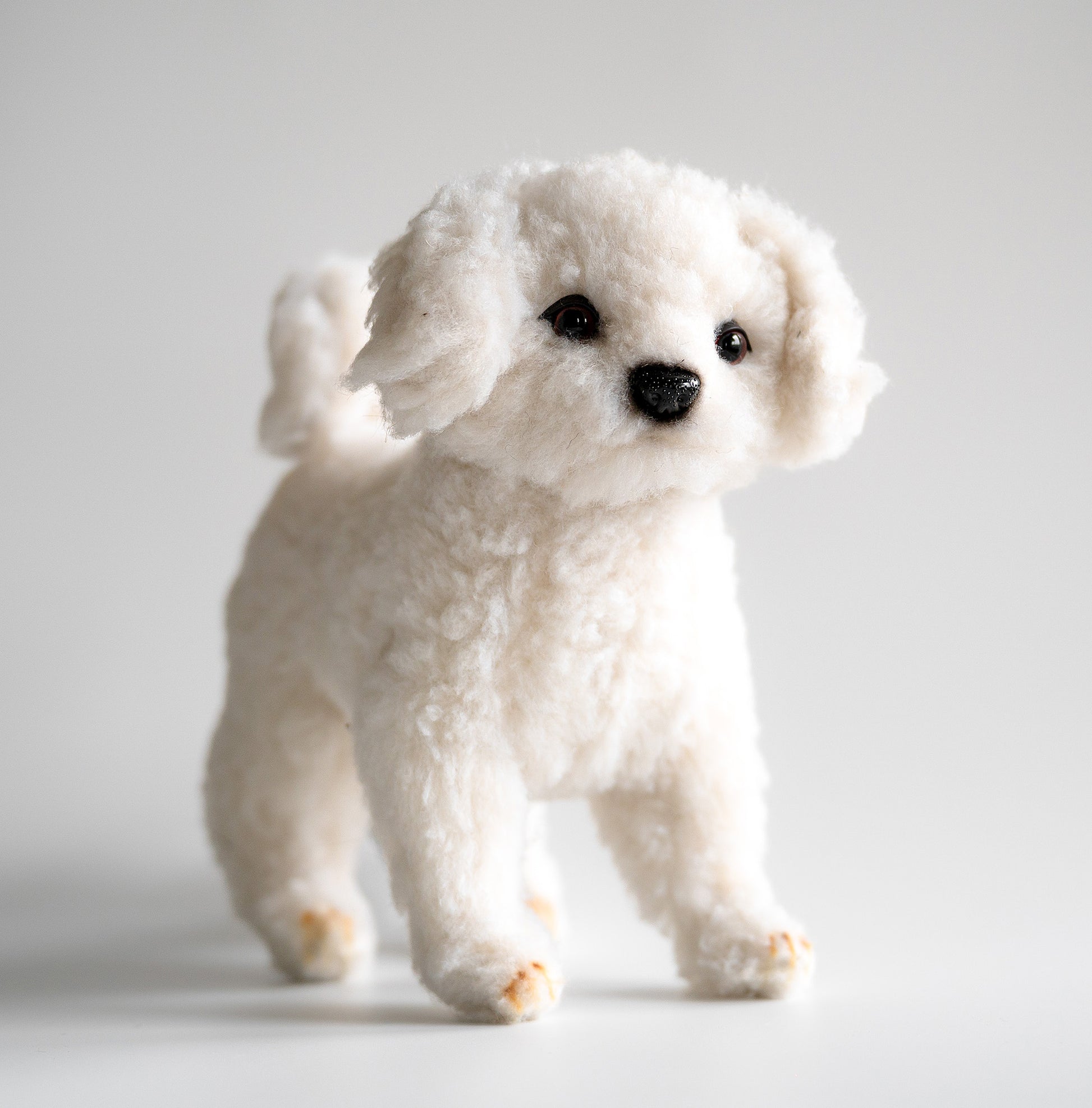 Alle Hansa Creation-dyr er håndlaget med enestående realisme. Denne Bichon Frise er formet med håndskåret syntetisk skum og sydd for hånd, noe som gir både livaktig uttrykk og solid struktur. Den er myk nok til å koses med, men så detaljert at den like gjerne kan stå til pynt. Hver Hansa-figur fremmer kjærlighet til dyr og natur – og dette lille sjarmtrollet er intet unntak.