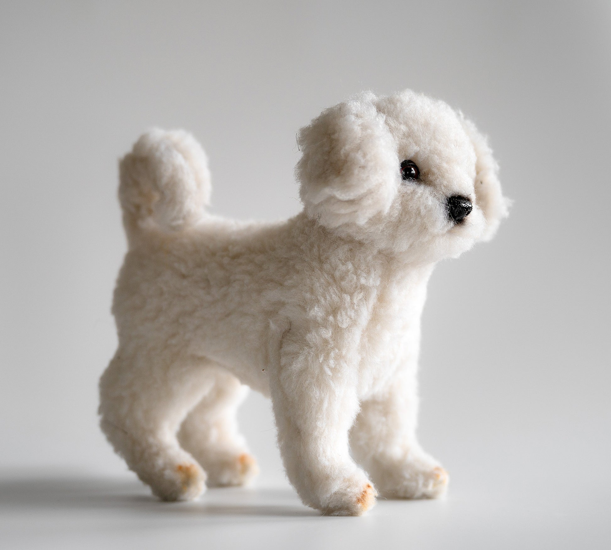 Med sitt krøllete, hvite pelsverk og milde blikk er denne Bichon Frise fra Hansa Creation like elegant som den er elskelig. Den sitter oppreist, stolt og klar for kos, lek eller pynt – en ideell følgesvenn for hundeelskere i alle aldre. Enten som gave til en som drømmer om hund, eller som et koselig innslag i hjemmet, vekker denne hunden både smil og varme.