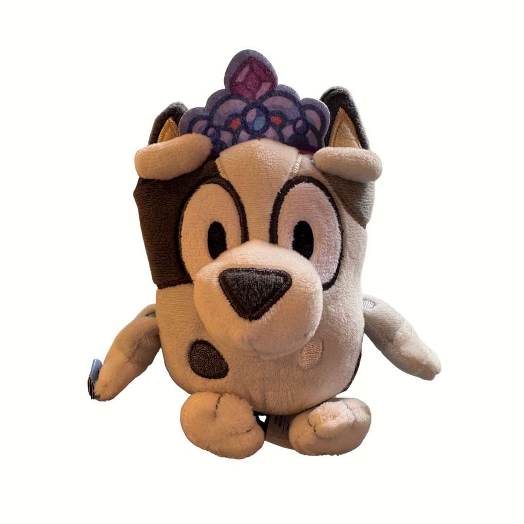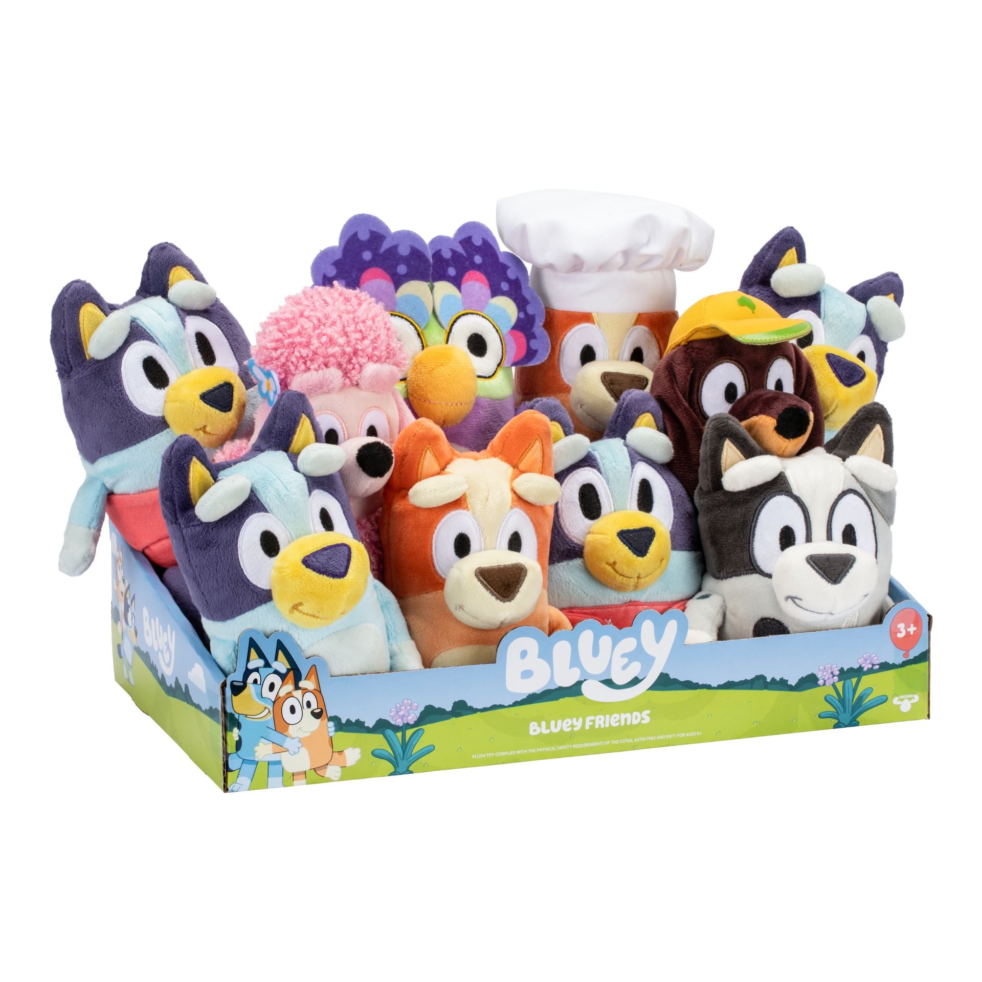 Ta med deg favorittkarakterene fra Bluey-universet hjem! Disse søte 18 cm kosedyrene er perfekte for små hender og store fantasier. Velg mellom Bluey, Bingo og mange av de andre fargerike vennene fra serien. Hver figur er laget i myk plysj og med flotte detaljer som gjør dem umulige å motstå – enten det er til lek, trøst eller som samlerobjekt.