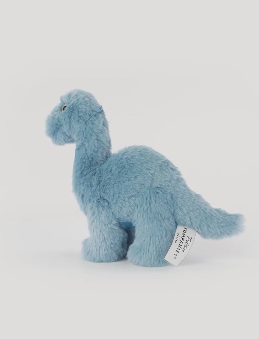 En myk og sjarmerende Brachiosaurus i dus blå plysj – perfekt for små dinofans som vil ha en rolig kosevenn til lek og leggetid. Den kompakte størrelsen gjør den lett å ta med i vogna, i bilen eller som trygg sovekamerat på barnerommet.