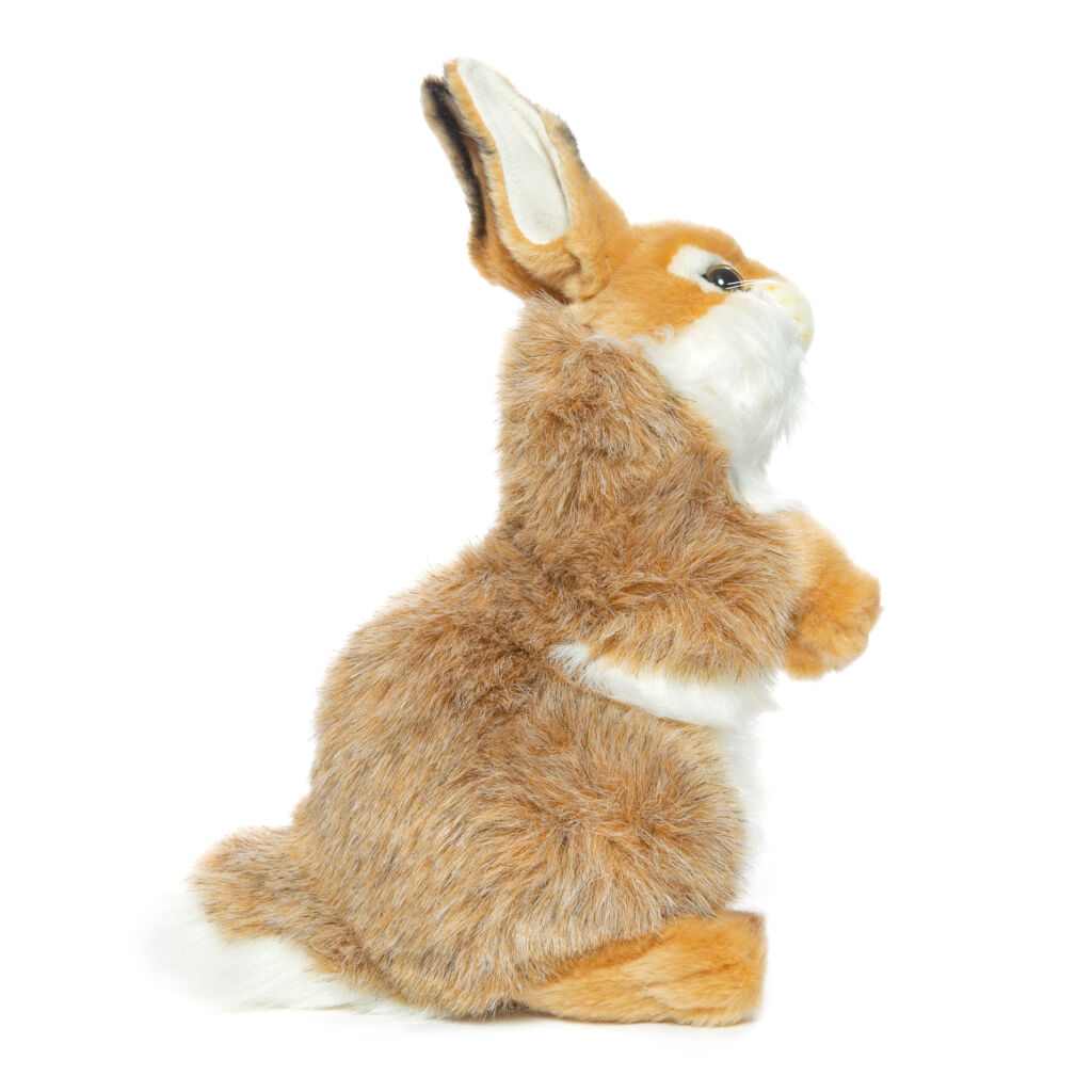 Hansa Creation er kjent for sitt håndverk og naturtro kosedyr – denne kaninen kombinerer kunstnerisk presisjon med pedagogisk verdi og holdbarhet.