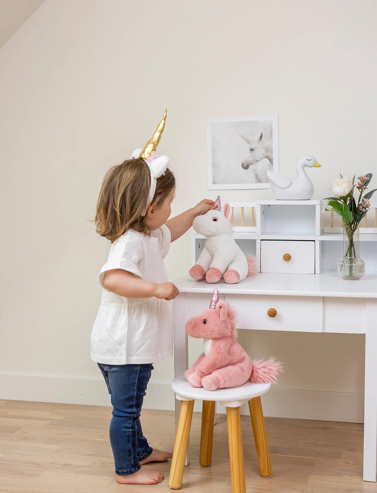 Unicorn Pink er designet for å tåle mange klemmer og er like fin som pynt på barnerommet som til lekestunder i stua. Fra svenske Teddykompaniet, kjent for høy kvalitet og trygghet.