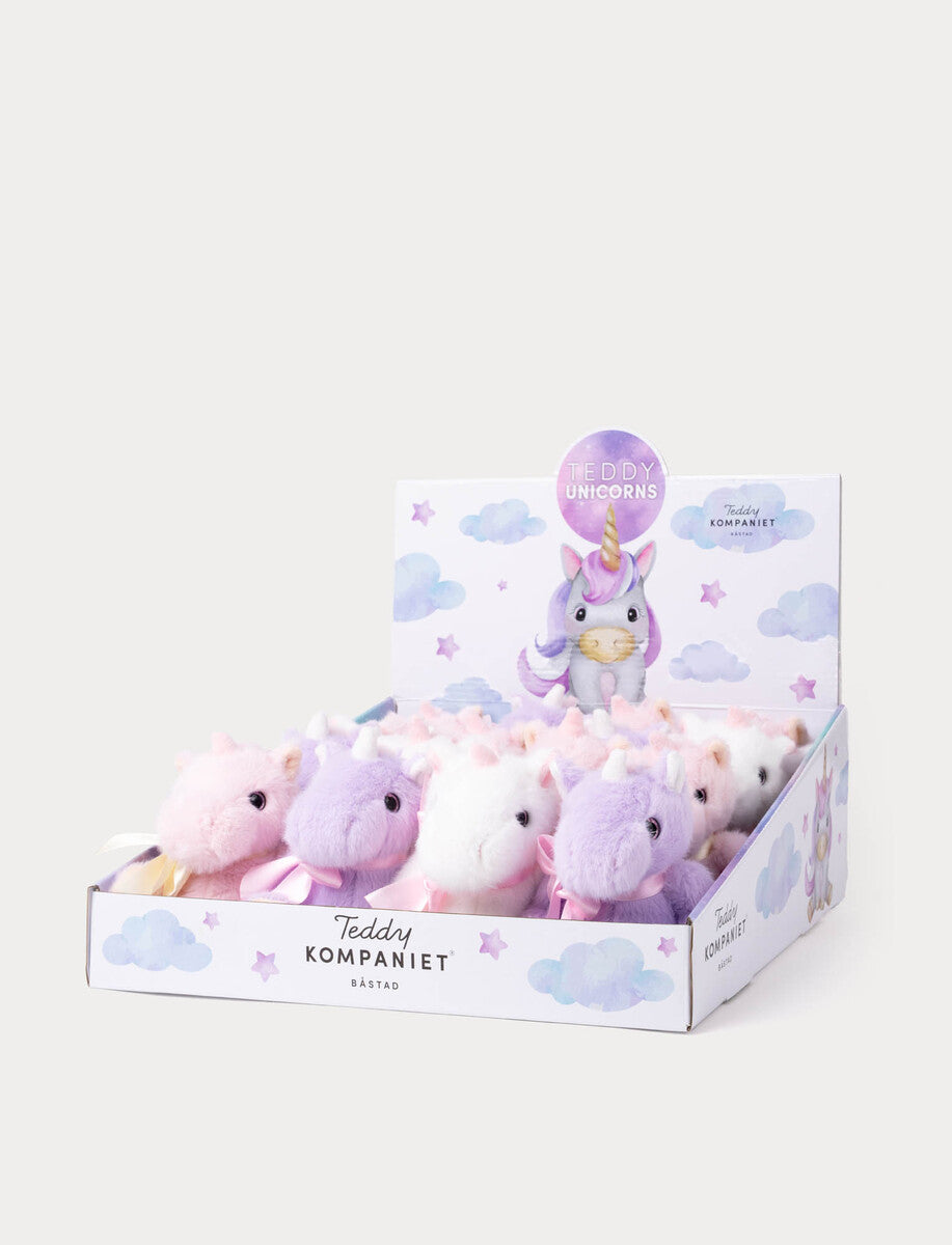 En liten, myk enhjørning som sprer magi i hverdagen! Disse søte minikosevennene fra Teddykompaniet kommer i tre pastellfarger med glitrende horn, myk man og en fin sløyfe rundt halsen. Perfekt størrelse for små hender, lek i vogna eller som en koselig trøst i sengen.