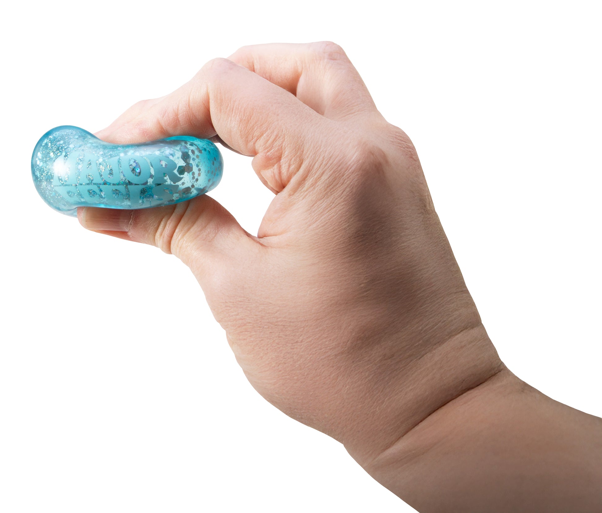 Størrelse ca. 4 cm per hjerte. Produktet er laget av fleksibelt plastmateriale fylt med en myk, formbar masse som gir langsom tilbakeforming etter klemming. Leveres assortert i farger og glittervarianter.