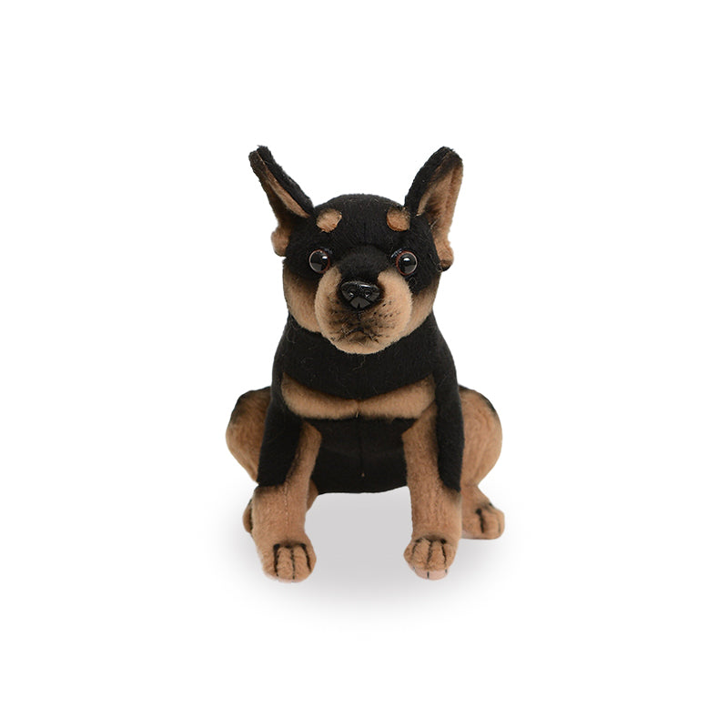 Denne lille Pinscher valpen fra Hansa Creation er en ekte hjerteknuser – med store, mørke øyne, stående ører og en kompakt kropp som passer perfekt i hånden. Den sitter stolt og oppmerksom, akkurat som en ekte miniatyrhund. Perfekt gave til hundeelskere eller barn som ønsker en trofast liten følgesvenn i lek og hverdag.