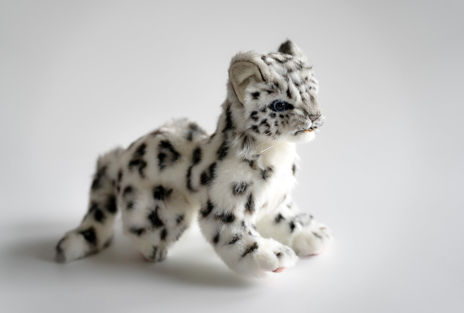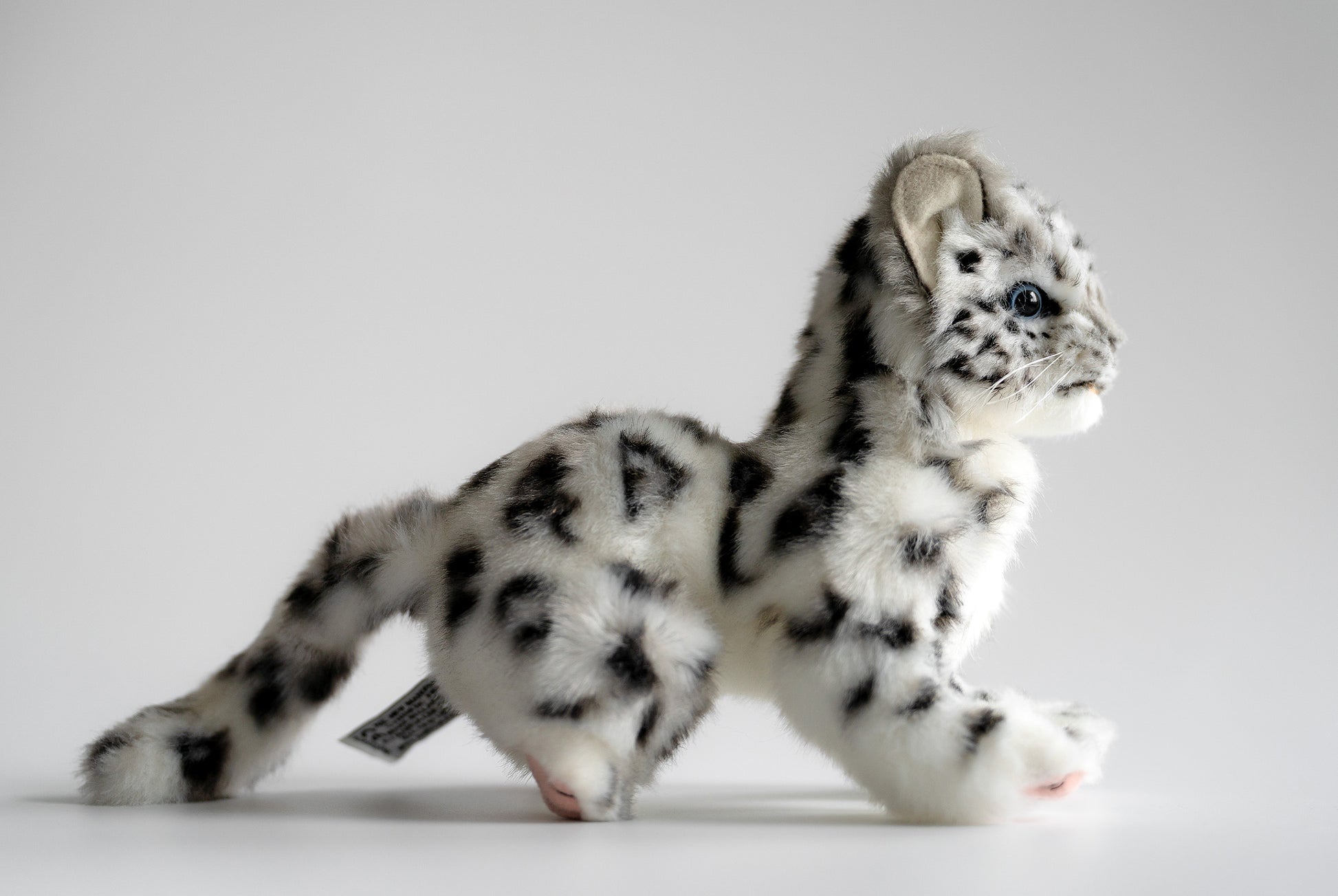 Denne vakre snøleoparden fra Hansa Creation er et naturtro kosedyr som fanger elegansen og mystikken til dette sjeldne fjelldyret. Med sin silkemyke, lyse pels med mørke rosettmønstre og intense øyne, er dette en imponerende bamse som passer perfekt for både lek, undervisning og dekorasjon.