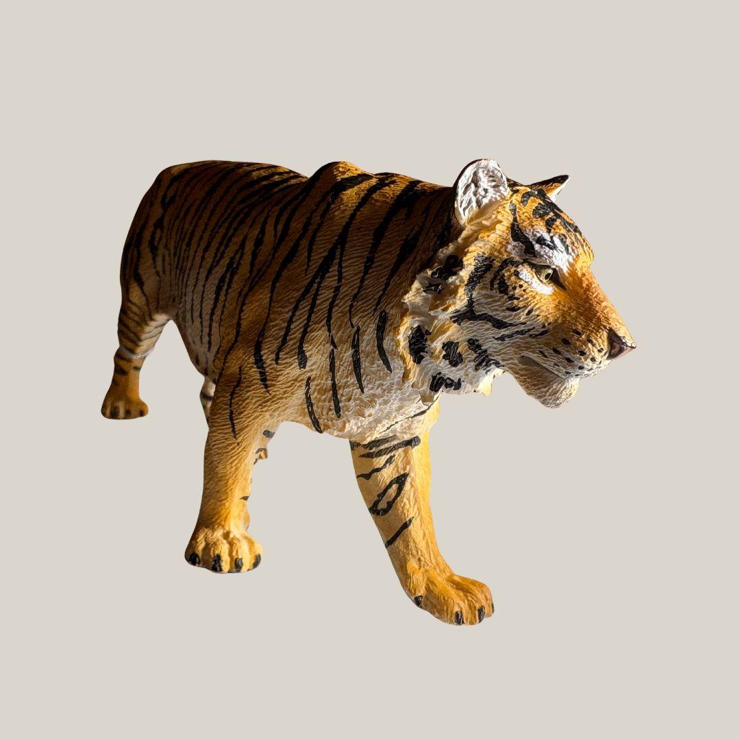 Tigeren er laget i ftalatfri plast og egner seg både til fri lek, tematisert rollespill eller som pedagogisk verktøy i undervisning om truede arter og naturvern.